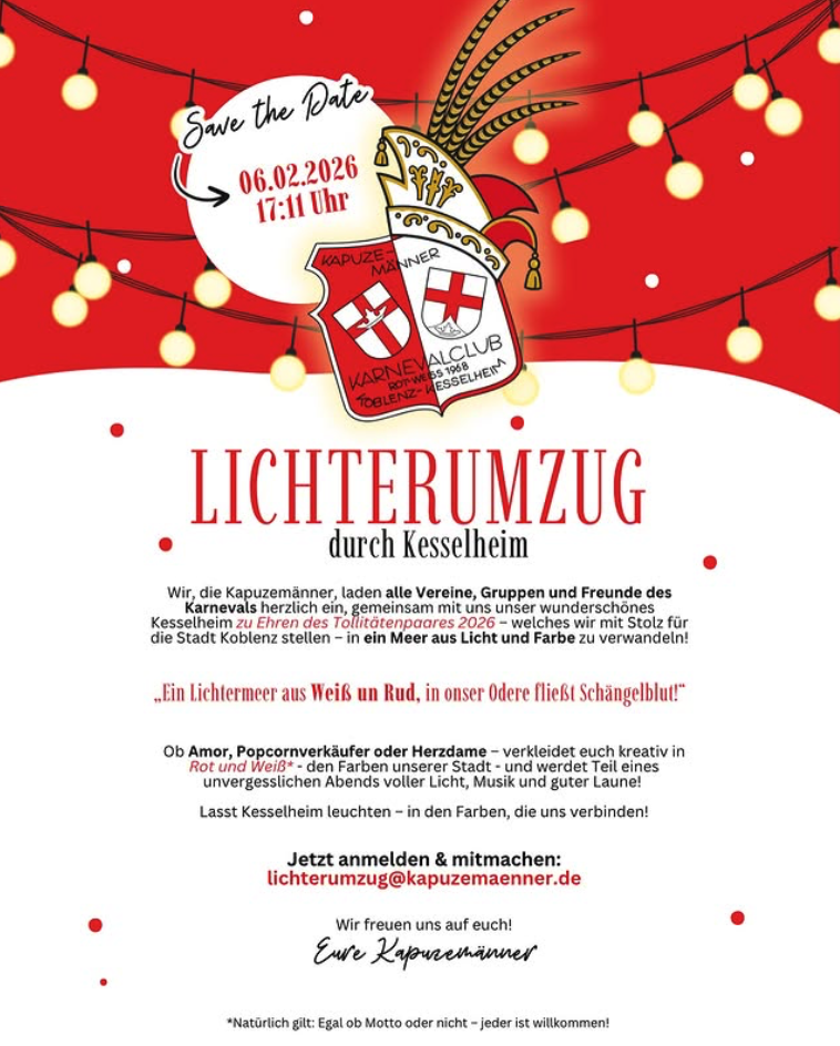 📅 Markiert euch den 06. Februar 2026 ab 17:11 Uhr in eurem Kalender und verwandelt die Straßen in ein Meer aus Licht, Musik und guter Laune!